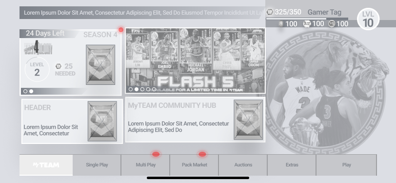 Task:Â I was responsible for bridging collaboration gaps between Visual Concepts and the 2K mobile team by defining a MyTEAM mobile design direction that respected the console franchise while meeting mobile best practices. This required independently developing core design patterns, aligning stakeholders around mobile standards, and translating the console experience into an intuitive mobile framework that supported different player behaviors and interaction needs.